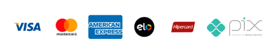 Você pode pagar com PIX ou cartão de crédito (com opção de parcelamento no cartão).